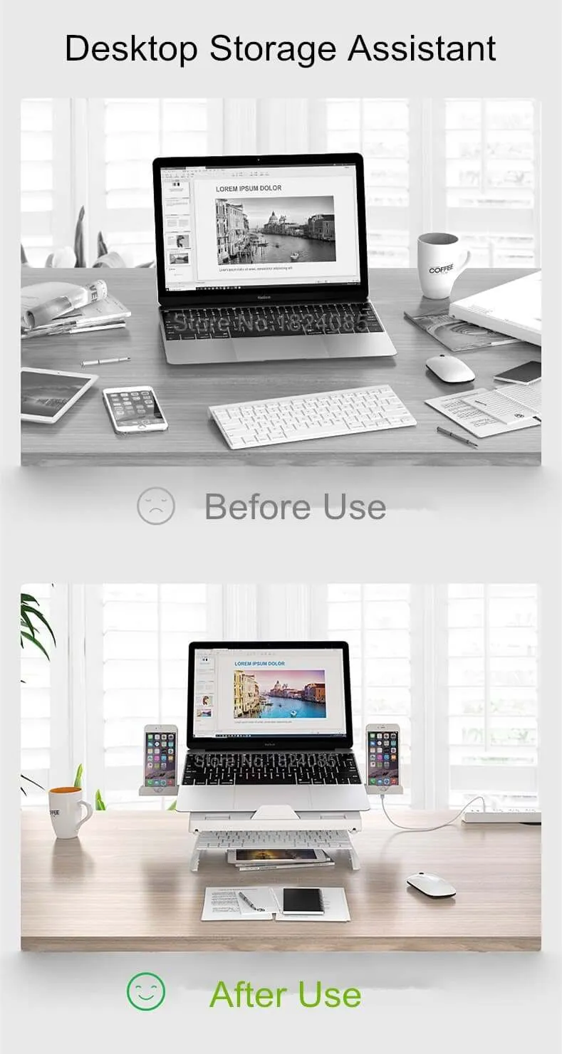 SOPORTE PARA PORTÁTIL CON 2 SOPORTES PARA TELÉFONO DETALLES